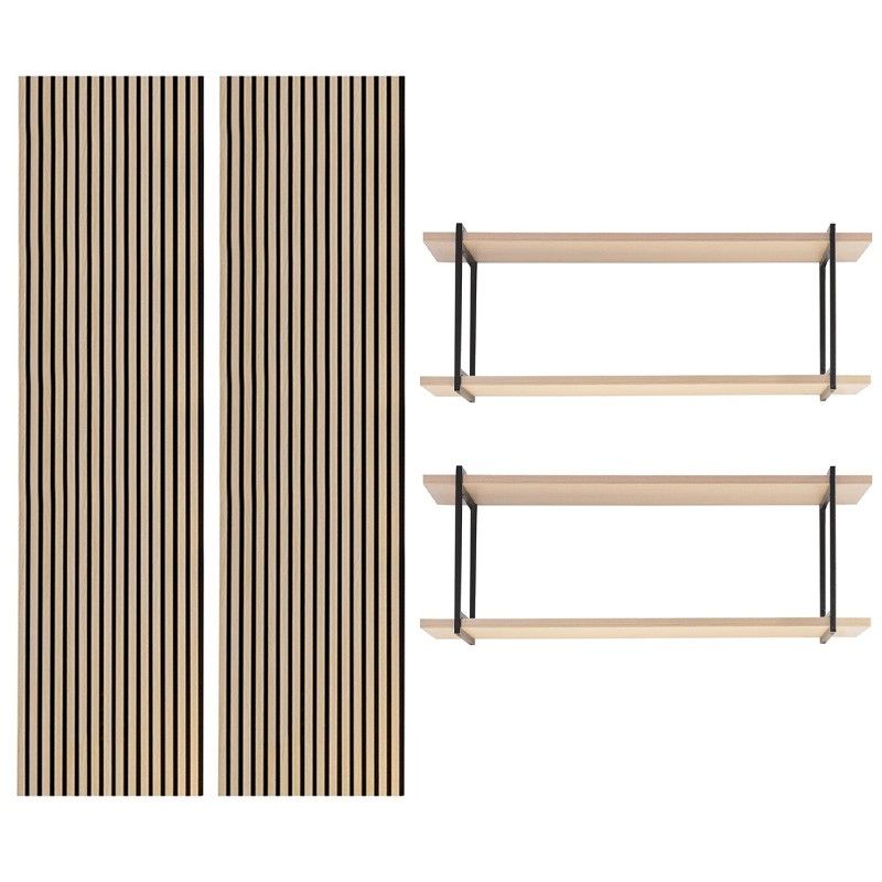 - Paneel: MDF-lamellen met hoge dichtheid en basis van 100% gerecycled polyester.